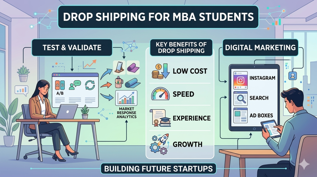 The rise of e-commerce provides an interesting platform for MBA students to learn about entrepreneurship with innovative business experiments like drop shipping.